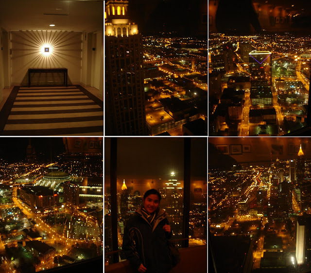 Westin is one of the tallest building in downtown Atlanta. Of course, we can't affort to stay there but Emil & Jose managed to find a way to go to the top floor which was their revolving restaurant. After dinner at a chinese restaurant, we 'sneaked' into the hotel and got to the top floor. I was amazed by the picturesque night view from the top!! The whole city was lit up and it looked completely different from the ground. That was totally awesome...what a good way to end our trip!!