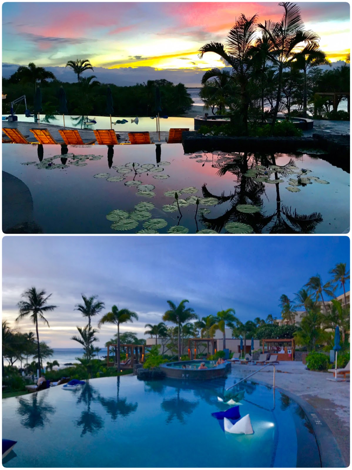 We stayed at the Holiday Inn Express Kailua-Kona for the first night since it was closer to the airport (20 min). We hotel-hopped for the next 2 nights and returned to this hotel for the last 4 nights. I used my IHG points to redeem 5 nights in this hotel so we paid only $50 ($10/day for parking). I liked this hotel because it is conveniently located in Kona town, there is no resort fees and they offer free breakfast. =)