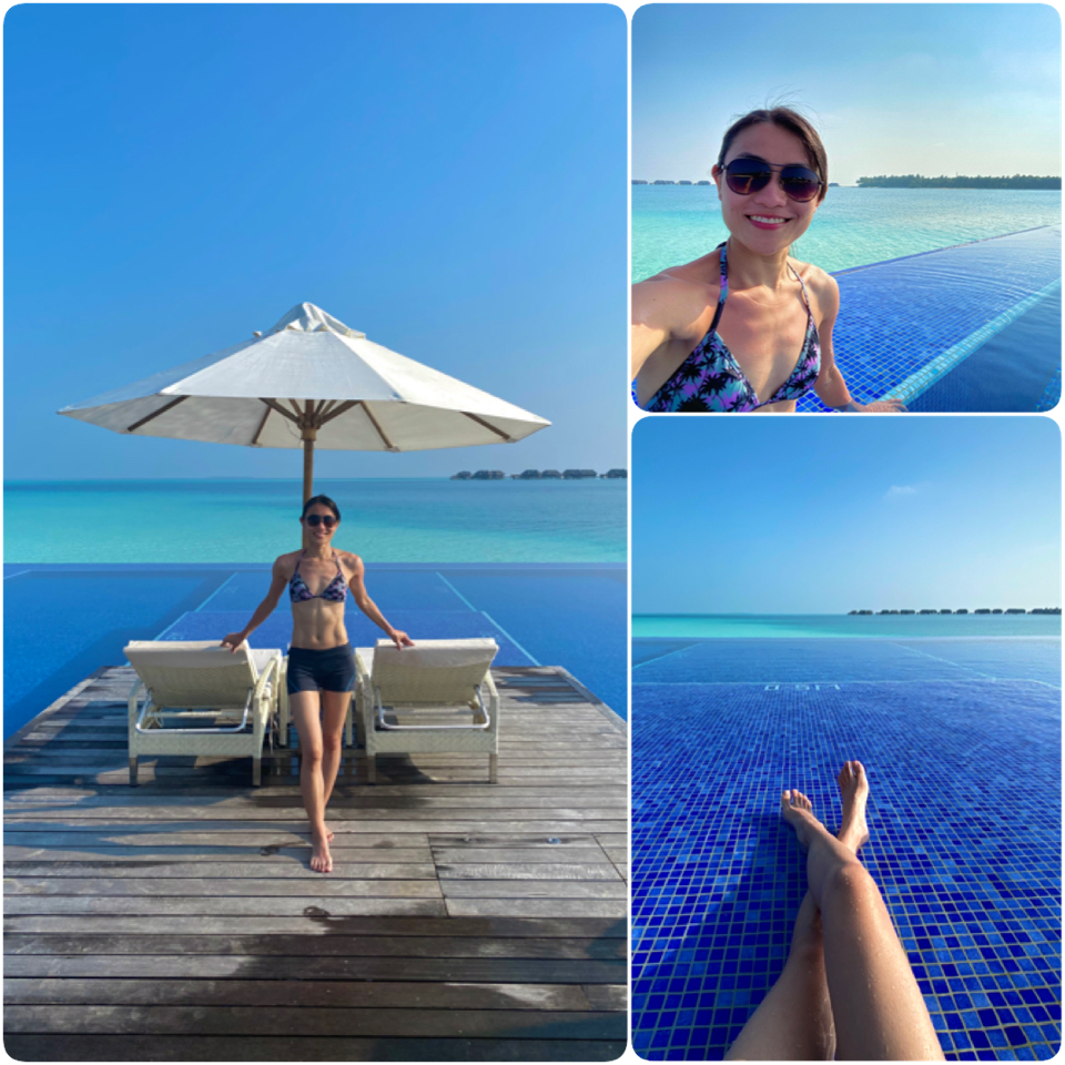 There are 2 pools. The Quiet Zone pool on Rangali Island is for adults only, and the one on the main island is for families. We spent most of our time in our water villa's pool so we didn't really use any of the common pools, apart from taking photos.