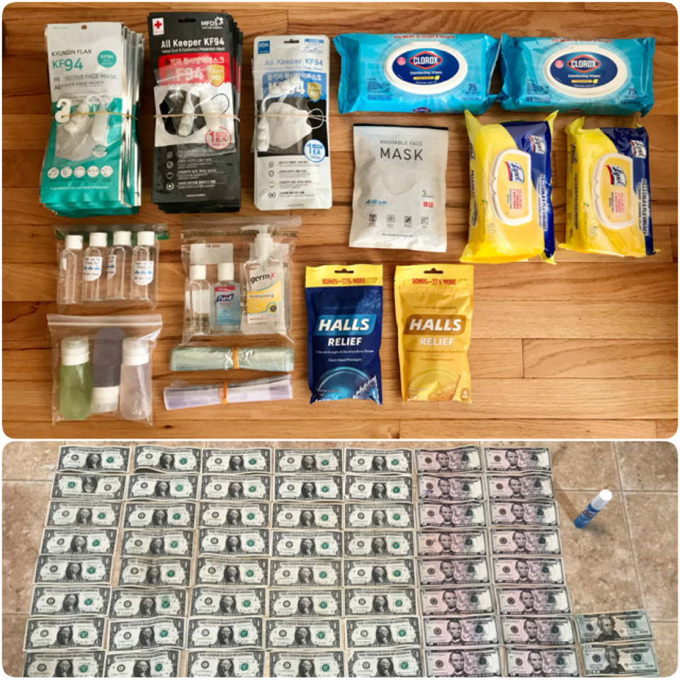 Unlike our previous travels, traveling during a pandemic means packing a lot more 'Covid' related items such as masks, disinfecting wipes, hand sanitizers, gloves, etc. I brought an extra fanny pack with my carry on to keep all these stuffs. Call me crazy but I even disinfected all the cash we withdrew.