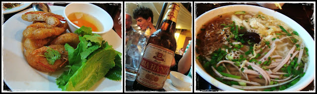 After returning from the tour, Hang brought me to Quan An Ngon for some yummylicious Vietnamese food. Clockwise from left: 1. Pho Cuon (Noodle Rolls) 2.Nom Thap Cam (Mixed Salad) 3. Bun Thang (Chicken Noodles) 4. Bia Hanoi (Hanoi Beer) 5. Banh Tom (Crispy Shrimps)