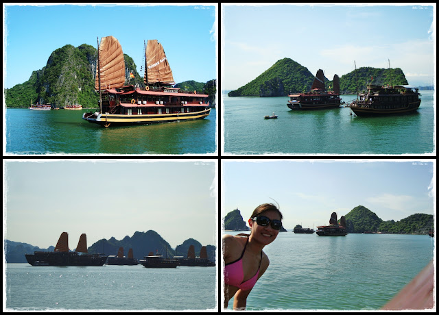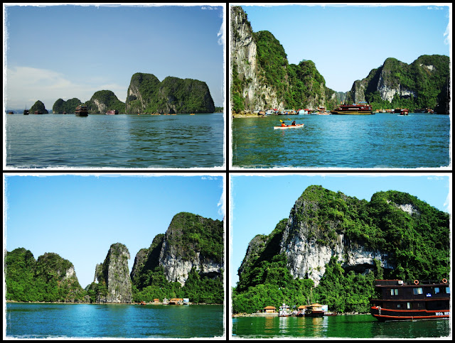 The journey from Hanoi to Halong took 4 hours and all we saw was fields after fields!! There were a total of 11 people in our tour group...mostly angmoh apart from a Vietnamese American & I. Most of the angmohs were traveling all around Southeast Asia so they were sharing and exchanging info among each other. It was pretty interesting listening to the conversation between 3 Irish girls and an Australian-Canadian couple.