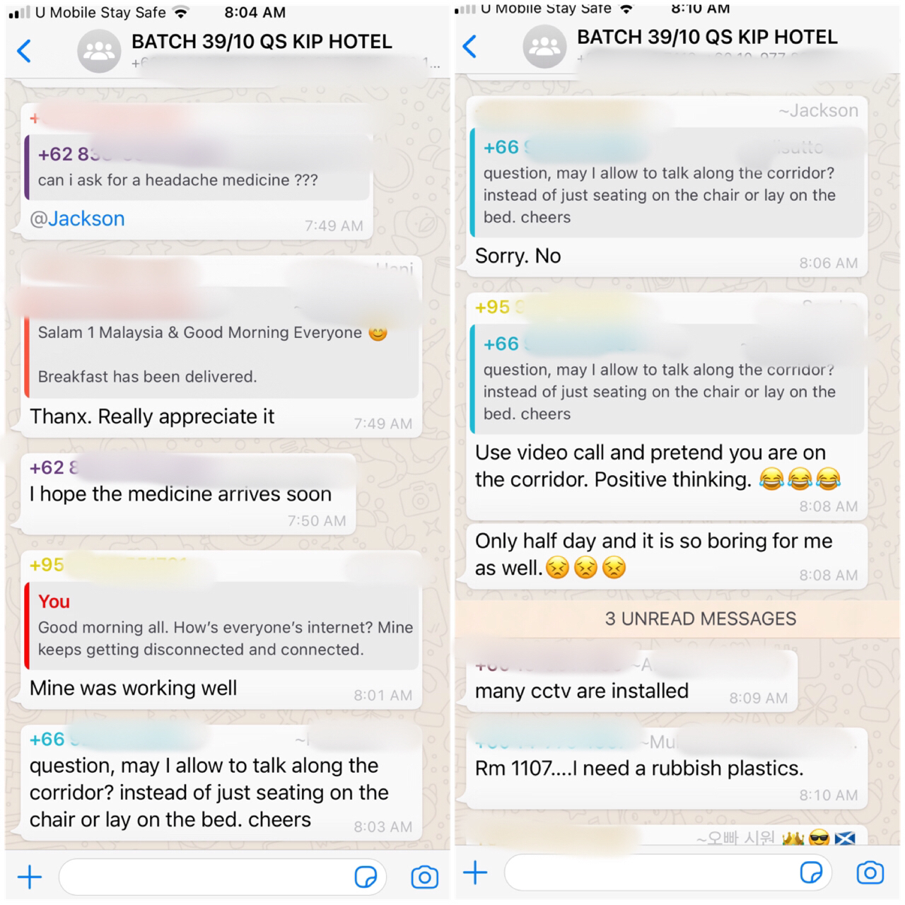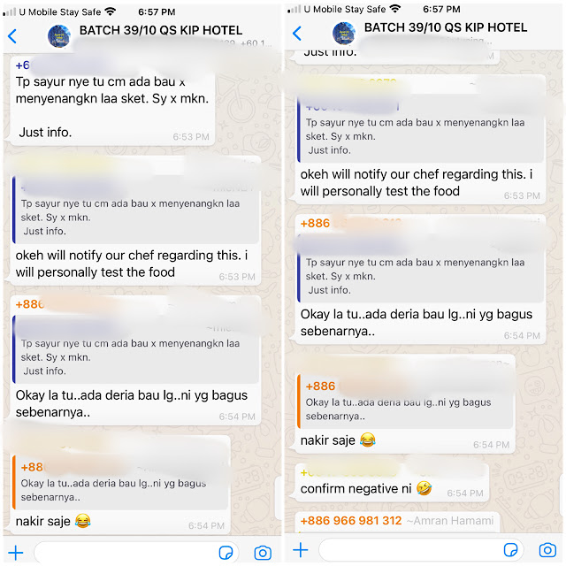 As mentioned above, we were given a QR code at check in to join the Whatsapp group for our quarantine batch, which the hotel staff used for all communication. I was in the 39th batch with 10 days quarantine group. I can't remember exactly how many people were in our group but I think it was at least 50. Our group included a group of employees who returned from an offshore windfarm in Taiwan so they were a lot more active in the group since they knew each other. As you can see above, the hotel staff were very responsive to all sort of questions and requests, including random request to 'talk along the corridor' and complaints about the smell of the veggies.