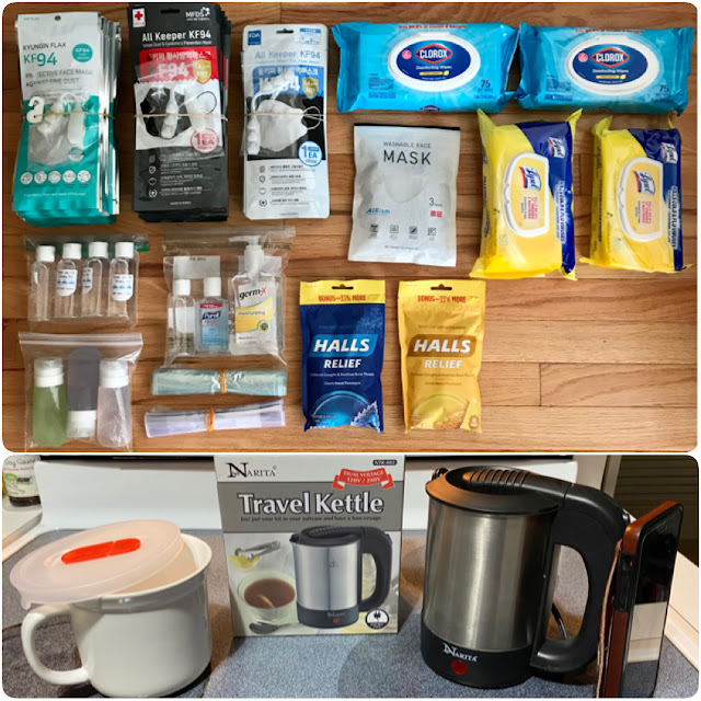 Traveling during the pandemic means packing a bit more 'COVID-essentials' and items that may be useful during quarantine. Some of the things I packed and found useful were disinfecting wipes, KF94/Uniqlo masks, hand sanitizers, gloves, travel kettle, HDMI cable, snacks, detergent, and dish wash liquid.