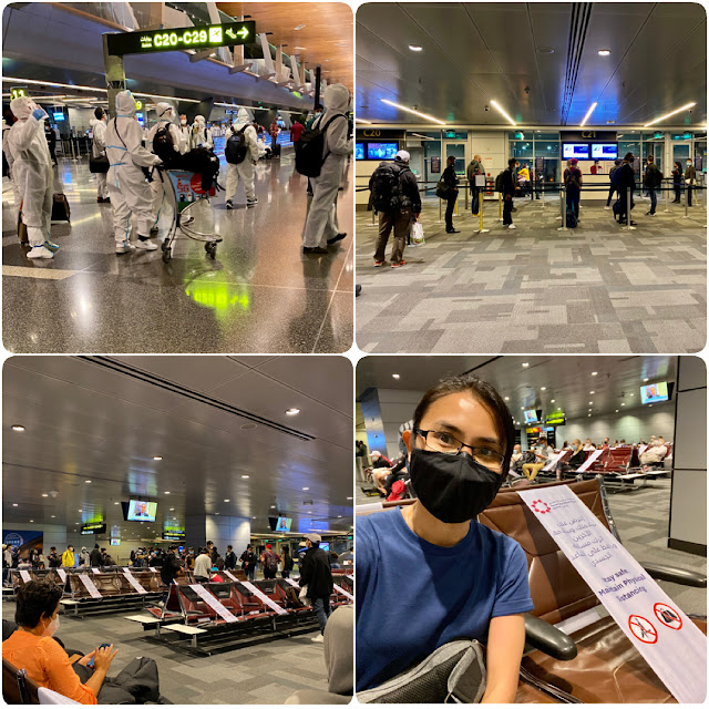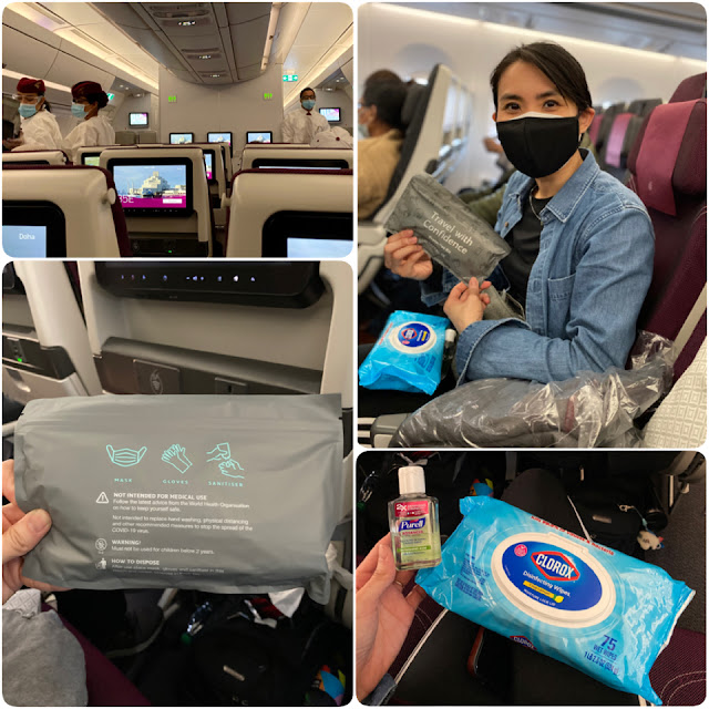 Doha airport was busy but not crowded with plenty of space for social distancing. All alternate seats were also blocked. I saw a few Chinese travelers who were suited up in PPE but they weren't on my flight. Boarding in Doha airport was a lot more organized and the staff reminded us to maintain physical distancing while standing in line. Since Malaysia is still not really open to foreigners, I was surprised to see a good number of non-Malaysian passengers boarding our flight. As usual, I waited to board last and had a quick chat with another Malaysian aunty from UK who was also traveling alone.