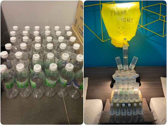 My room was stocked with a carton of bottled water, 3 extra rolls of toilet paper, a full bag of toiletries (i.e. shampoo, bath gel, soaps), and a bag of coffee, tea, creamer, and sugar. There was a fridge and a kettle in the room. In general, the amenities provided were sufficient and we were able to request for more via the Whatsapp group chat. There was also a phone in the room where we could call the front desk if we needed. Few items I wished the hotel had provided were lotion, conditioner, hairdryer, and iron.