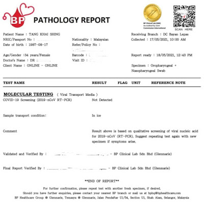 In addition to the COVID-19 tests I had done upon arriving in KLIA, I was required to do another test on Day 7. All of us who were quarantining for 10 days were ushered to another room where we took turns to get our test. For this 2nd test, they did only the nose swab. A negative PCR test result from this 2nd test is required before I'm allowed to exit my quarantine. I was relieved to received the negative test results on Day 9. =)