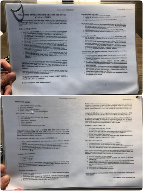 A lot of information about the quarantine do's and don'ts were also provided in a laminated leaflet in our hotel room.