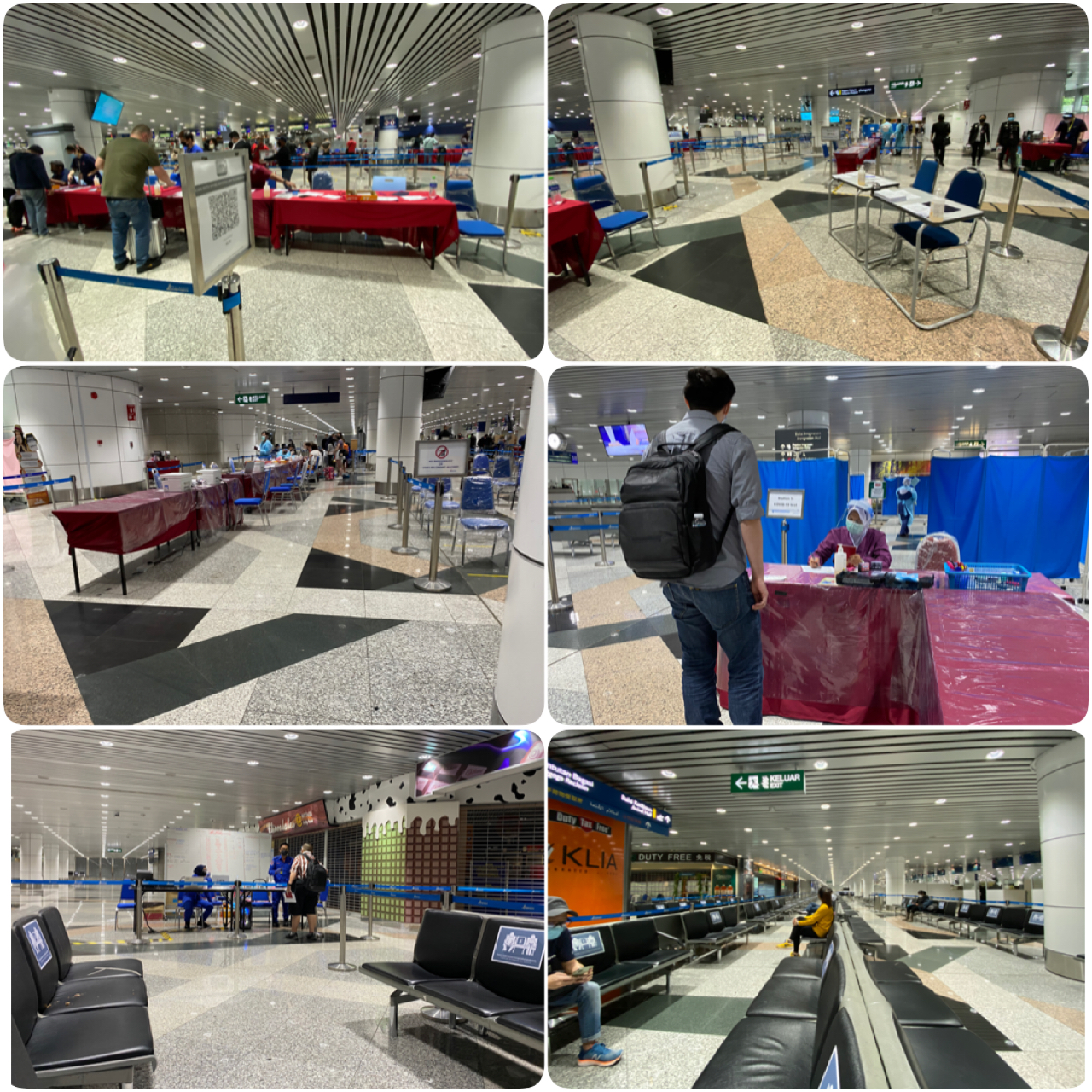 The were a few people huddled around the Aero Train area where we were supposed to scan the QR code using the MySejahtera app. There was also a staff stationed at this area helping confused passengers on how to fill out the information on the app. The app prompted me to fill in my flight details, seat locations, IC, passport, and hotel address. Since I wasn't sure which hotel I was staying at yet, the staff helped me out by entering KLIA's address.