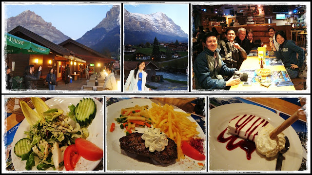 Had our sumptuous dinner at a local restaurant...appetizer, main course, desert...yum yum!! Nice view of the mountains from the restaurant too. But I was surprised to find out that a glass of water cost CHF4 = RM12!?!? Luckily I didn't order...haha! :p
