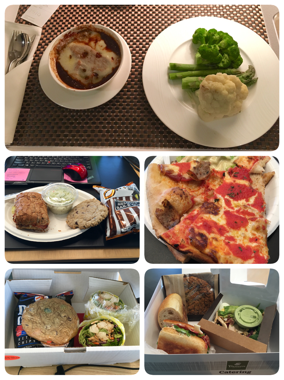 Room service for first night's dinner but very disappointed by the food, especially the whole bouquet of uncut broccolis and cauliflower. Lunch was catered so that saved us a whole lot of trouble.