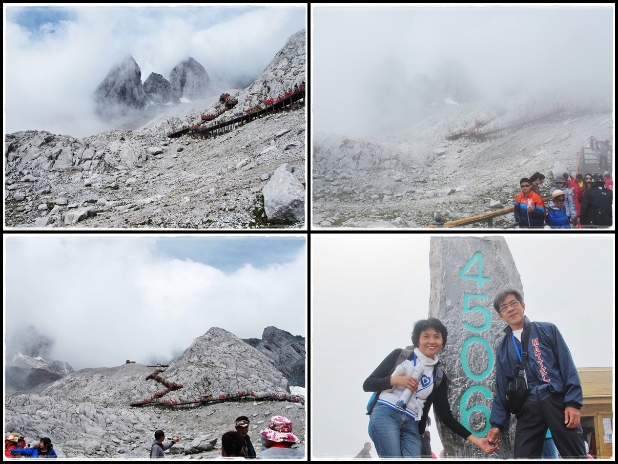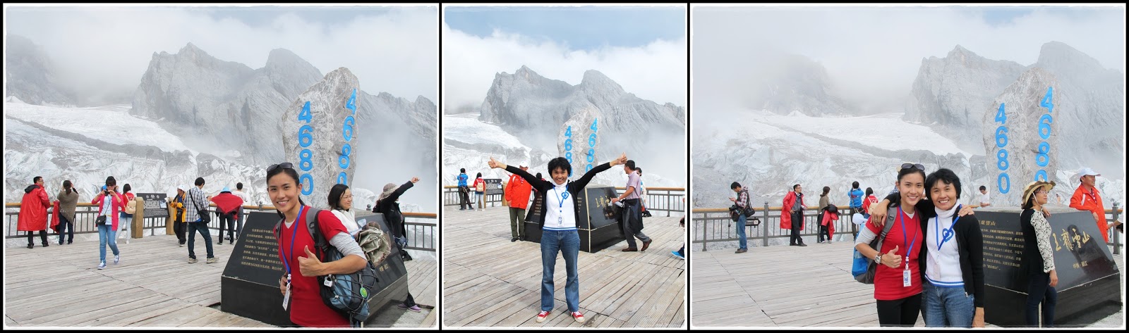 After hiking slowly for 40 minutes, we finally arrived at altitude 4680m!! The highest altitude I've ever been. It was very misty when we got there so we could only see the stone and a few topless guy showing off their fats and making the background of my pics look ugly. Dude...it's not even cold, what are you trying to show off? So annoying! =.=