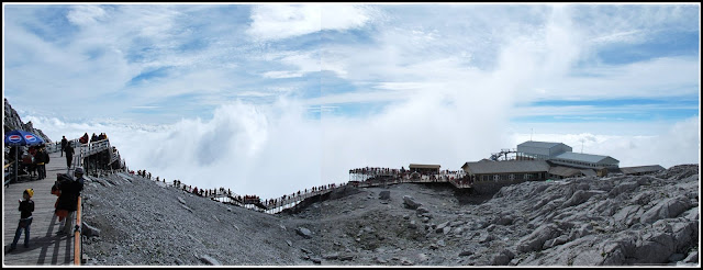 Quickly took some pics of the clear mountain before it got misty again. =P Btw, even though this 'snow' mountain is supposed to be capped with snow all year round, the effect of global warming (mainly caused by the huge amount of Chinese tourists coming here over the past few years) have caused the snow line to increase. That's why we see no snow but rocks. =P