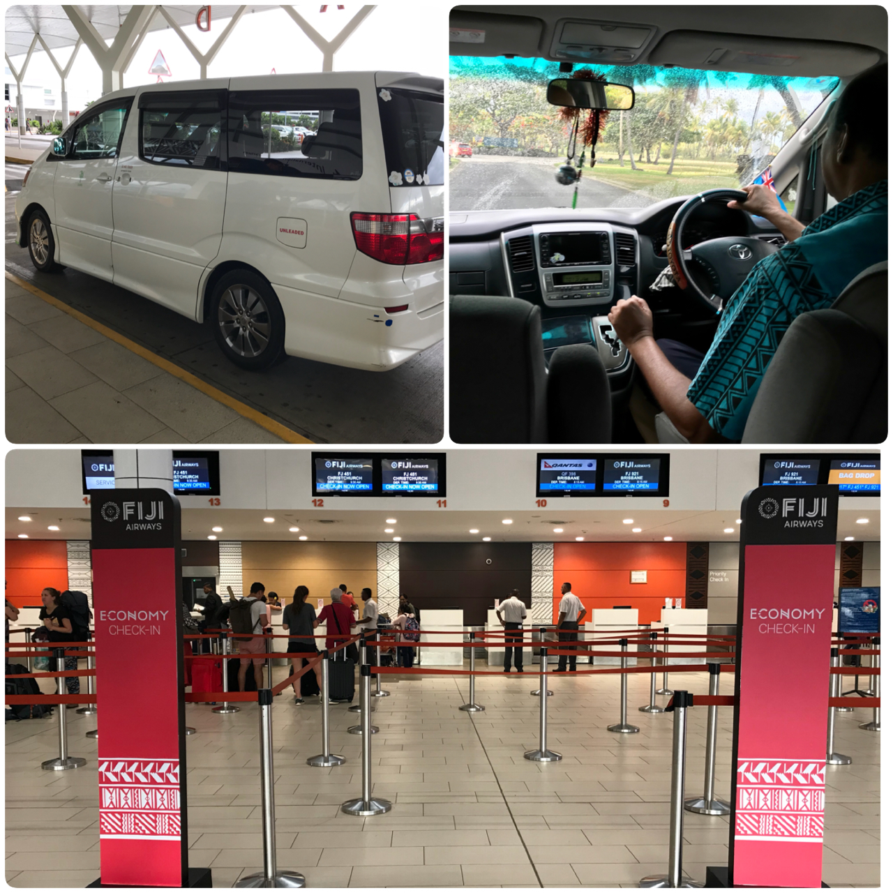 We chose to take a cab from the hotel to the airport this time around, instead of going on another bus adventure. Cost a lil' more ($25) but we didn't mind splurging a lil' as we had a long day ahead in New Zealand and certainly didn't want to start the day sweating. =P