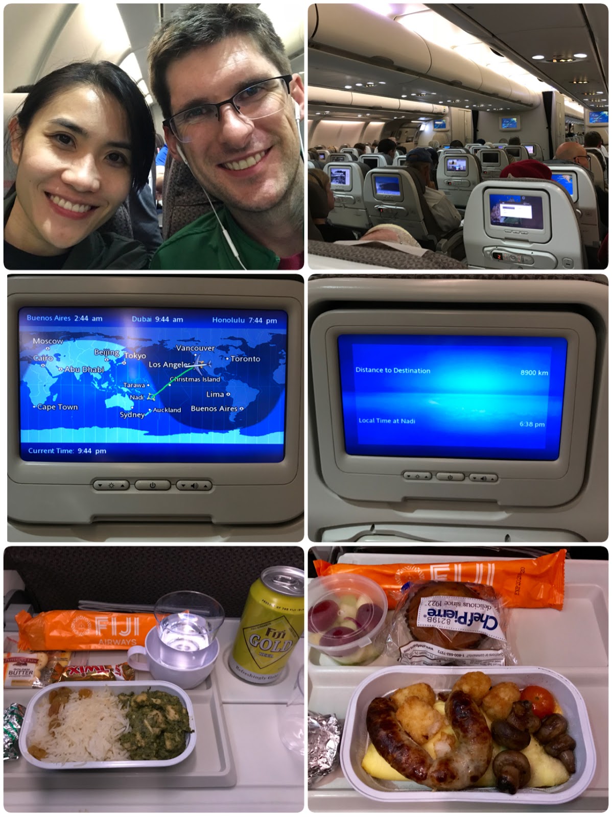 My first time traveling on Fiji Airways. We had a row of 3 seats for the 2 of us and I was able to rest a lil'. However, the turbulence was pretty bad almost throughout the entire 12.5 hours flight so it wasn't very pleasant.
