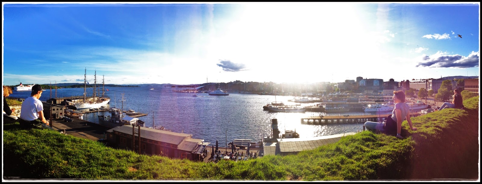Chillin' at the park nearby while waiting for Jared...lol we really chilled a lot in Oslo!! That white house by the fortress (bottom left pic) was where we had our dinner. =)