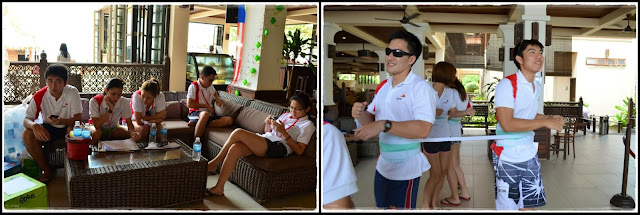 The team-building games was supposed to be scheduled on Sunday morning but we made a last minute decision to switch it up to Saturday afternoon coz it looked like it was gonna rain and it wouldn't be nice to snorkel. With only 2 hours to get things ready, all 12 committees worked together to help trial-run and set-up the games...total teamwork. =)