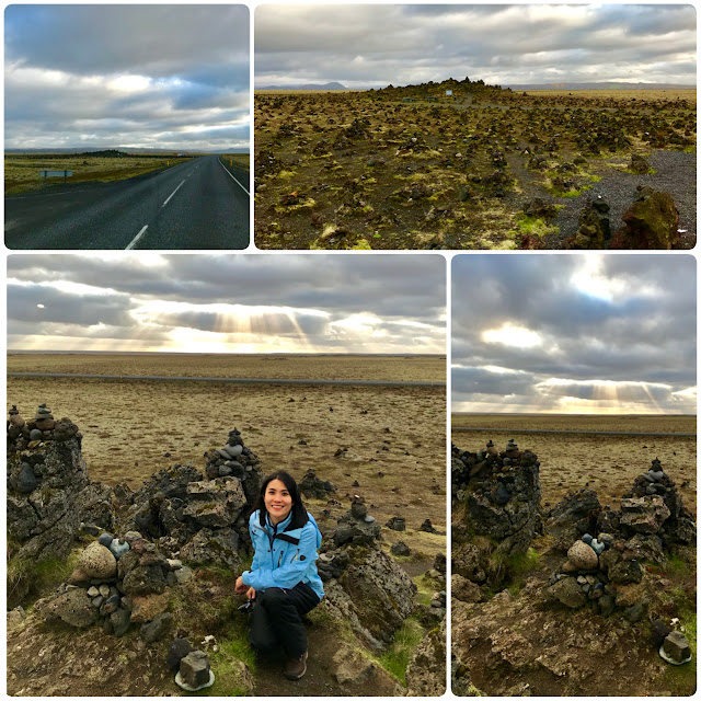 After driving for 40 minutes, we arrived at the Laufskálavarða Lava Ridge. At first, it looked like it was just an area filled with piles of stacked stones in the middle of nowhere right by the Ring Road. According to the historical notes, these stone cairns have been accumulated throughout the years by travelers to pay tribute to a large farm destroyed in a volcano eruption in 1894. Everyone passing by it for the first time was supposed to add a stone to bring him good luck on his journey.