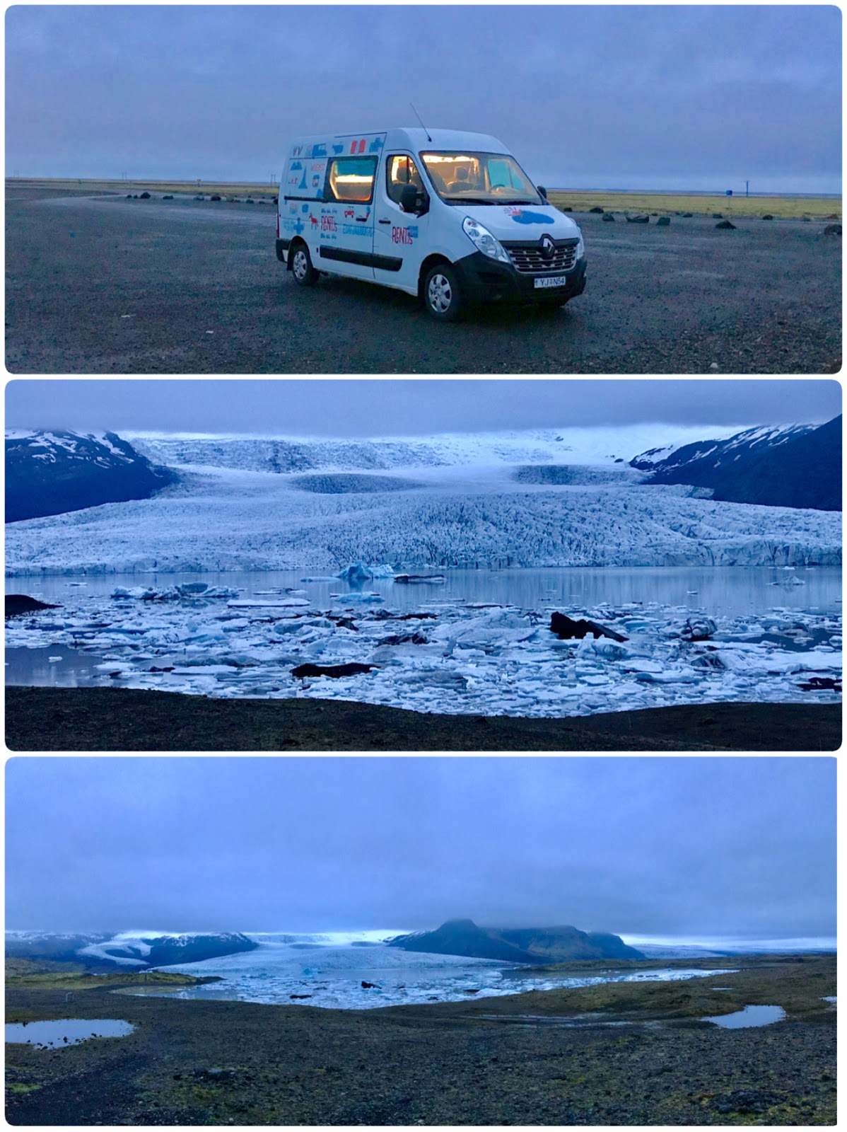 To get to SvÃnafellsjökull Glacier Lake, we had to turn off the Ring Road and got on a super bumpy gravel road for 2.5km. I was so focused helping hubby navigate through the many potholes and forgotten to take any photos of the road condition. As seen on Google street view, the road condition was already pretty bad in 2013, imagine bigger and more potholes 5 years later. We had to be extremely careful and slow with the big camper van, the last thing we want happening is a punctured tire. =P