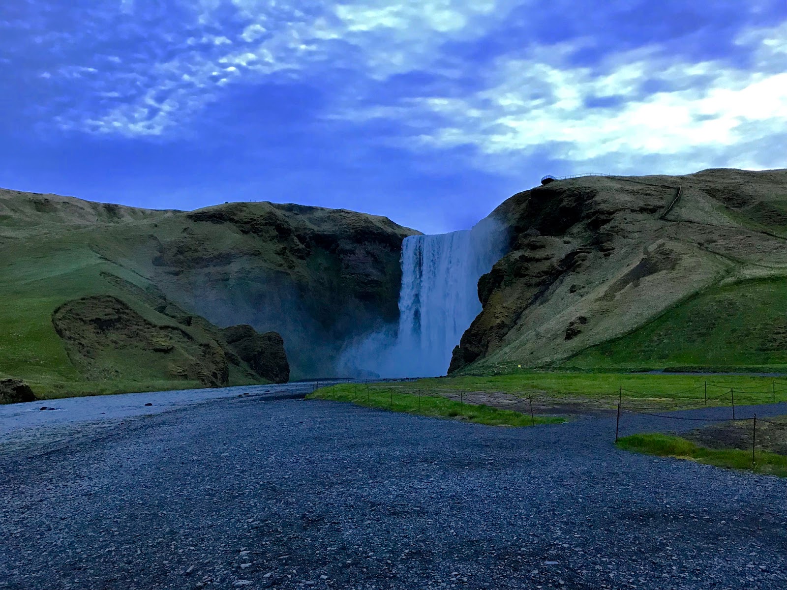 After 7 hours of rest, we were ready to continue our sightseeing at 11pm. Yes, we decided to travel outside of the normal hours to experience Iceland in solitude. After filling up gas (successfully used the self-service station with our credit card), we started driving towards the first of many waterfalls on this trip. Driving at this hour = no cars AT ALL!